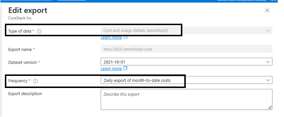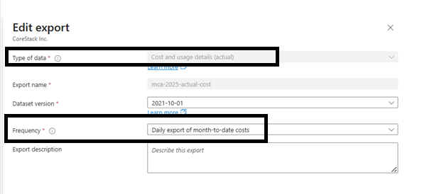 | Export name | CoreStack-Actual-Cost (or similar) |