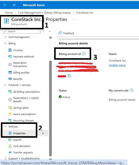You will need the Billing Account ID to authenticate CoreStack with your MCA account.