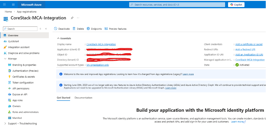 - Application (client) ID — this is the Application ID required by CoreStack.