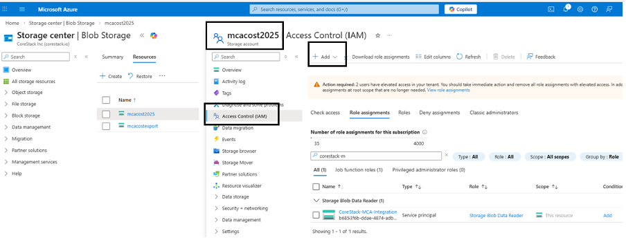 CoreStack's service principal must be able to read the exported cost files from the Blob Storage container.