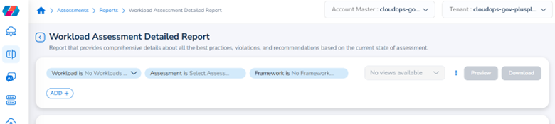 - Workload Assessment Detailed Report: This report provides comprehensive details about all the best practices, violations, and recommendations based on the current state of assessment.