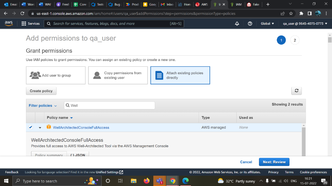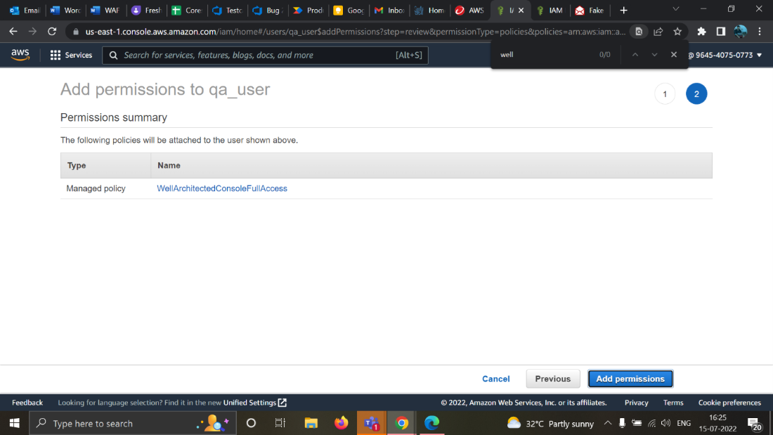 For example, let's say we have to add a permission for the policy “WellArchitectedConsoleFullAccess”.