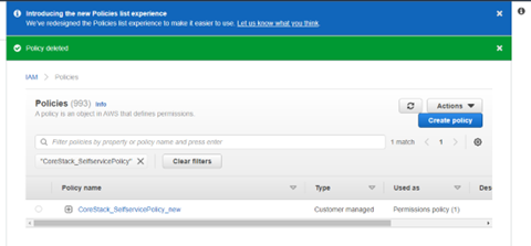 - Search for the policy name. For example, “CoreStack_SelfservicePolicy”.